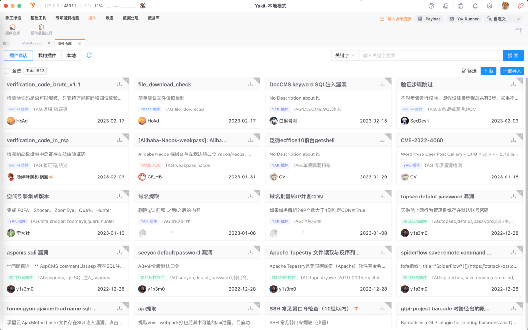 3.漏洞管理:Yakit 具有内置的漏洞管理功能,用户可以跟踪漏洞的状态、优先级和责任人等信息,并记录漏洞修复的进展。