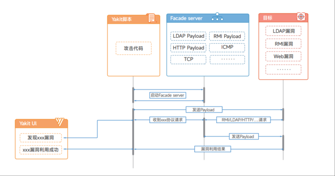 许多漏洞利用场景需要用到不同协议服务的反连,传统漏洞利用工具需要在公网服务器为每一个服务监听一个端口,如LDAP类型的漏洞利用,需要启动HTTP服务、LDAP服务,然后发送攻击请求,才能完成一次漏洞利用。传统服务需要为每一个服务分配唯一端口,而Yaklang的端口协议复用技术可以监听一个端口,识别请求的协议,作出相应响应。Yaklang端口协议复用技术优势除了节省系统资源,便于手工测试等外,由于底层原理是手工识别了各种协议头,基于协议标准对各种协议进行手工实现,从而可以灵活的构造各种协议的数据包。例如可以构造一些畸形的协议进行漏洞利用,或通过DNS协议、ICMP协议等携带数据,可以通过这种方式作为后门的权限维持或绕过一些TCP协议不出网情况下的漏洞利用。