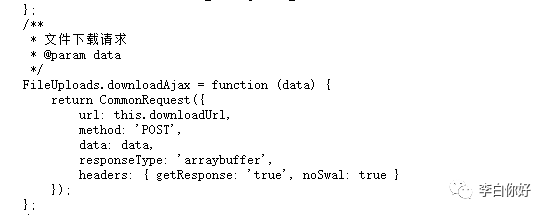 一个一个js文件看过去在fileUpload.js里面发现了文件下载功能 请求地址是this.downloadUrl然后参数是data