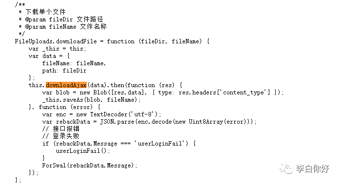 接下来看哪里调用了这个方法downloadAjax,然后看到调用的地方得到两个参数一个fileName一个path
