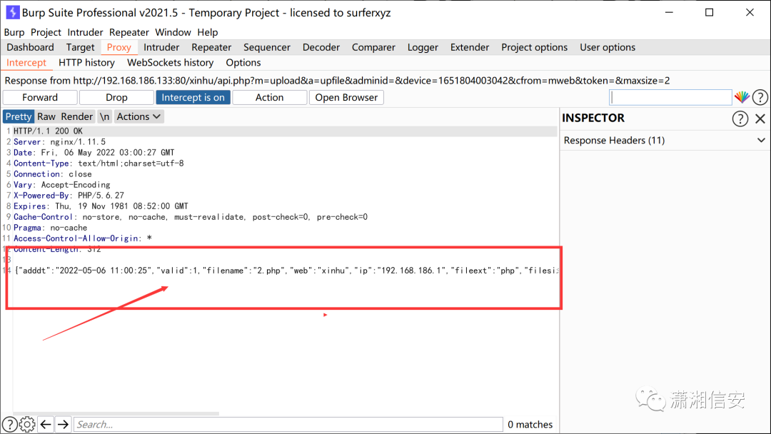 {"adddt":"2022-05-06 11:17:46","valid":1,"filename":"shell.jpg","web":"xinhu","ip":"192.168.186.1","fileext":"jpg","filesize":29818,"filesizecn":"29.12 KB","filepath":"upload\/2022-05\/06_11174720.jpg","optid":8,"optname":"\u4fe1\u547c\u5ba2\u670d","filetype":"image\/jpeg","thumbpath":"upload\/2022-05\/06_11174720_s.jpg","id":7,"picw":700,"pich":933}