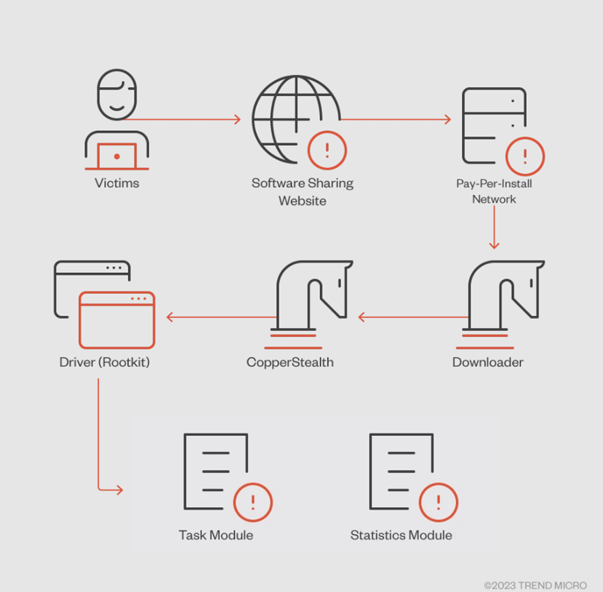 自 2021 年以来,研究人员一直在跟踪称为 Water Orthrus 的威胁行为者的活动,该行为者通过按安装付费 (PPI) 网络分发 CopperStealer 恶意软件。威胁行为者出于不同目的多次升级和修改恶意软件,例如注入网络广告、获取个人信息和窃取加密货币。我们认为它们与 2019 年报告为“ Scranos ”的威胁活动有关。2023 年 3 月观察到两个传播新恶意软件的活动,研究人员将其命名为 CopperStealth 和 CopperPhish。这两种恶意软件都具有与 CopperStealer 相似的特征,并且很可能是由同一作者开发的,相信这些活动很可能是 Water Orthrus 的新活动。这篇博文讨论了研究人员对 CopperStealth 和 CopperPhish 感染链的分析,以及它们与 Water Orthrus 的相似之处。