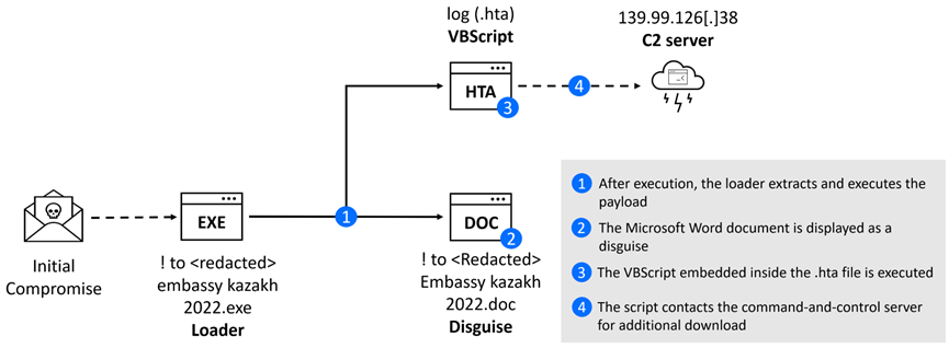 2022年底,研究人员监测到针对哈萨克斯坦外国政府机构和阿富汗的网络攻击活动并于近日披露相关信息,此次活动中的恶意软件家族被命名为DownEx。根据其攻击目标、冒充外交官的文档元数据以及主要进行数据窃取行为,判断DownEx背后有国家支持。由于其使用了在俄语国家流行的Microsoft Office 2016破解版,并且后门程序使用两种语言编写(APT28组织曾使用过该种方式),将此次攻击活动归因为俄罗斯组织。