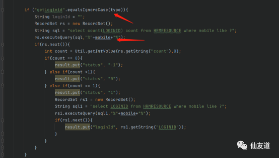 Type传getLoginid,mobile模糊查询,