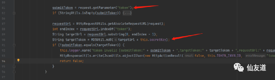 获取token参数,如果token值与请求url+secretkey的md5值相同就可以绕过认证![]()