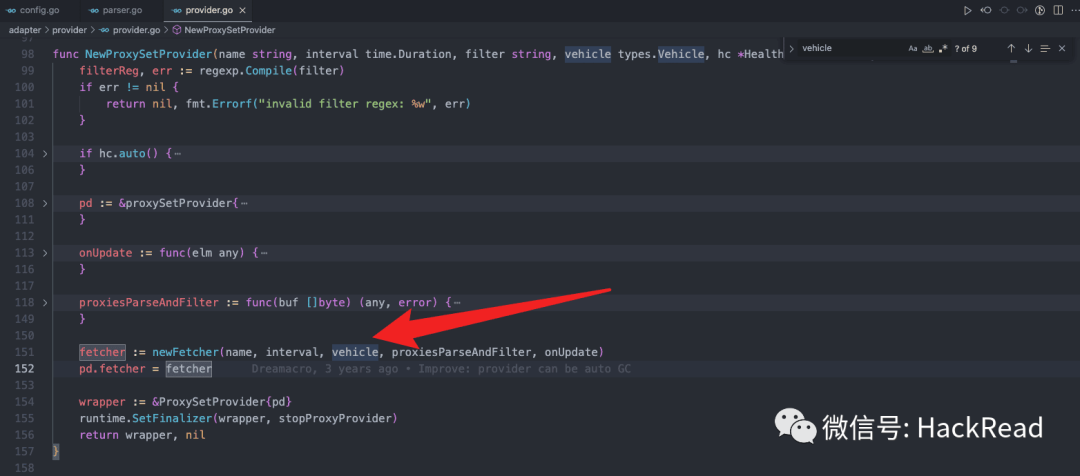 1 2 3 4 5 6 7 8 9 10 11 func NewProxySetProvider (name string, interval time.Duration, filter string, vehicle types.Vehicle, hc *HealthCheck) (*ProxySetProvider, error) { // ... // ... fetcher := newFetcher(name, interval, vehicle, proxiesParseAndFilter, onUpdate) pd.fetcher = fetcher