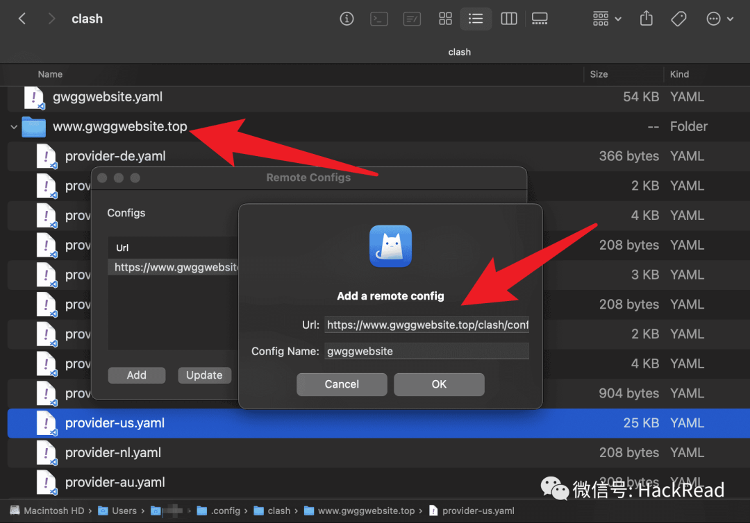 限于文章篇幅,针对使用CLI Clash的Linux用户的攻击就不演示了,只做针对macOS用户使用ClashX是如何遭受到攻击的演示。