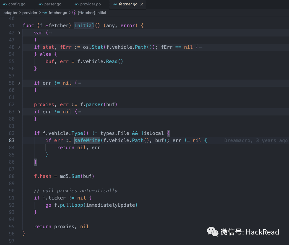 1 2 3 4 5 6 for _, provider := range providersMap { log.Infoln("Start initial provider %s" , provider.Name()) if err := provider.Initial(); err != nil { return nil , nil , fmt.Errorf("initial proxy provider %s error: %w" , provider.Name(), err) } }