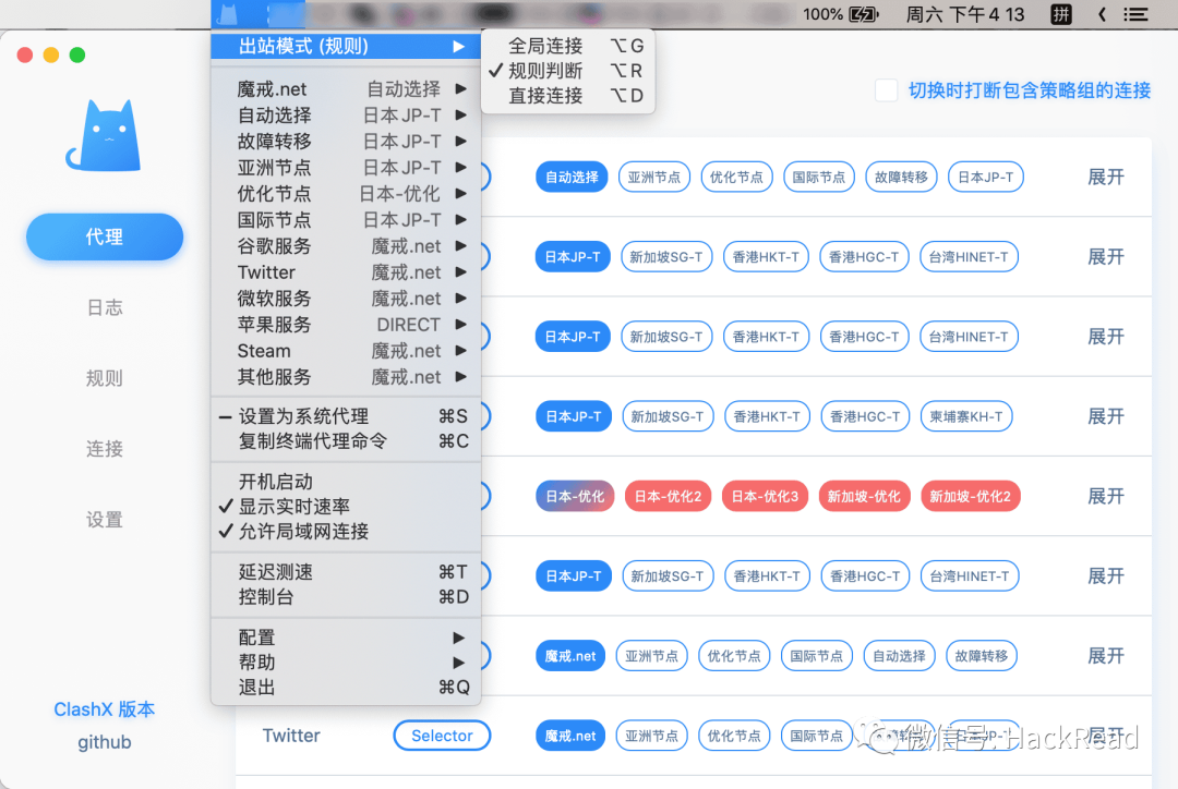 以上是目前最流行的三款Clash系列相关的软件,Clash和ClashX源代码都是开源的,CFW是闭源的,ClashX与CFW这两个GUI工具的核心依然是前者Clash,即Clash是ClashX与CFW的上游。
