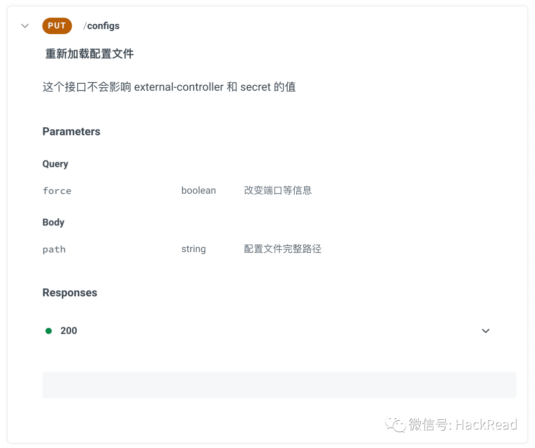 继续查阅RESTful API接口,发现某个API可以重新加载配置文件,这里倒是引起了注意力。