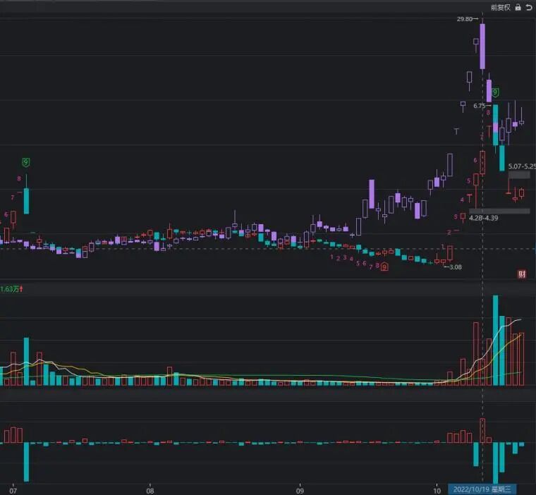 2022.10.18日,这是一个关键的时间节点,上边三个股的地位没有变化,但是出现了一个值得关注的股,英飞拓,英飞拓和南天信息都是5板,国脉科技虽然7板身位更高,但是非一致性启动的题材比如CHATGPT,龙头个股通常以换手的方式走出来。南天信息的地位受到了威胁,次日就要观察二者的PK,跟随胜利者,结果次日英飞拓胜出,当天打板买入都是可以得,胜利者溢价(只有主线周期加速阶段和博傻盘顶段才会有胜利者溢价。下跌阶段和混沌周期是不确定的),第二天赚钱的概率接近100%。第一个被淘汰的是南天信息。