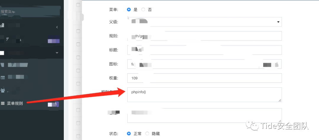 public function getRuleList($uid = null){$uid = is_null($uid) ? $this->id : $uid;return parent::getRuleList($uid);}这里又跳到了父链,在父级中的getRuleList方法体如下。public function getRuleList($uid){static $_rulelist = []; //保存用户验证通过的权限列表if (isset($_rulelist[$uid])) {return $_rulelist[$uid];}if (2 == $this->config['auth_type'] && Session::has('_rule_list_' . $uid)) {return Session::get('_rule_list_' . $uid);}// 读取用户规则节点$ids = $this->getRuleIds($uid);if (empty($ids)) {$_rulelist[$uid] = [];return [];}// 筛选条件$where = ['status' => 'normal'];if (!in_array('*', $ids)) {$where['id'] = ['in', $ids];}//读取用户组所有权限规则$this->rules = Db::name($this->config['auth_rule'])->where($where)->field('id,pid,condition,icon,name,title,ismenu')->select();//循环规则,判断结果。$rulelist = []; //if (in_array('*', $ids)) {$rulelist[] = "*";}foreach ($this->rules as $rule) {//超级管理员无需验证conditionif (!empty($rule['condition']) && !in_array('*', $ids)) {//根据condition进行验证$user = $this->getUserInfo($uid); //获取用户信息,一维数组$command = preg_replace('/\{(\w*?)\}/', '$user[\'\\1\']', $rule['condition']);@(eval('$condition=(' . $command . ');'));if ($condition) {$rulelist[$rule['id']] = strtolower($rule['name']);}