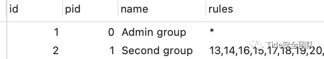 if (!empty($rule['condition']) && !in_array('*', $ids)) {这里判断了是否是*号,是*号就是超级管理员。求证数据库。截图下:将以下代码