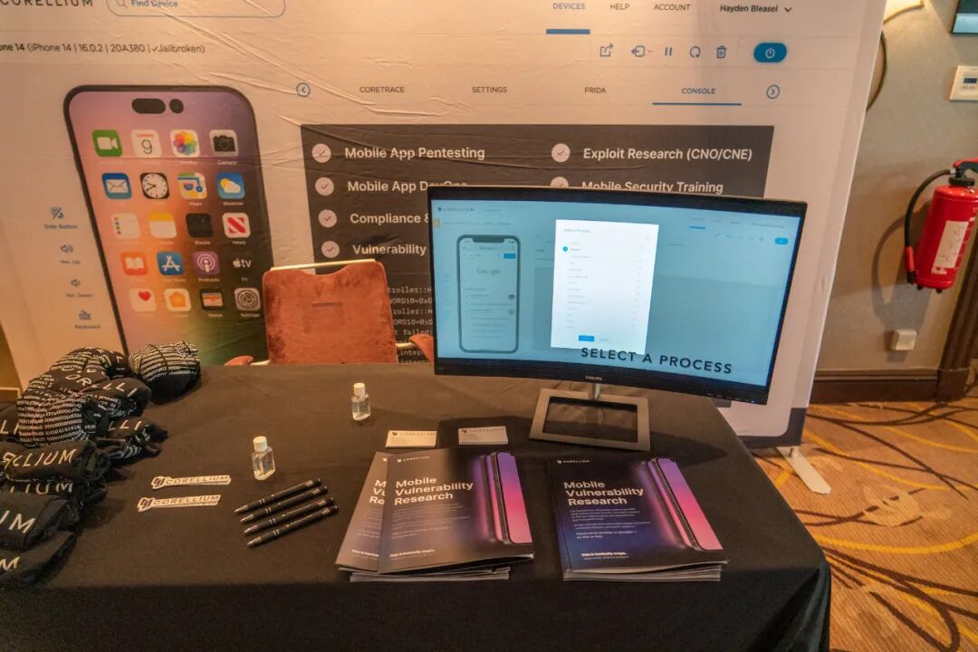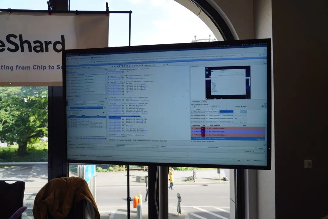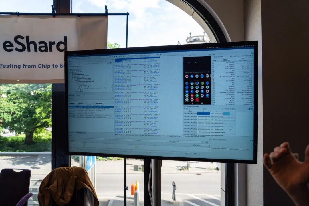 去年 OffensiveCon 就看过的做 Timeless Debugging 平台的厂商 Tetrane 后来被 eShard 收购了。eShard 在现场还有做芯片 Fault Injection 的演示,看介绍还有移动安全测试的业务。
