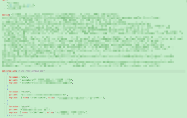 首先准备好目标系统的A、B两账号,根据系统的鉴权逻辑(Cookie、header、参数等)将A账号信息配置config/config.yml,之后登录B账号