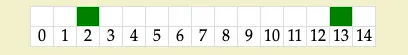 下面是一个比特向量的例子。白色单元格代表值为 0 的位,绿色单元格代表值为 1 的位。