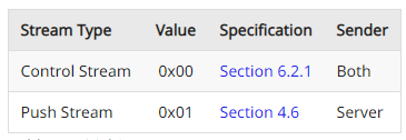 HTTP/3单向流类型会建立一个注册表,“HTTP/3流类型”注册表管理62位空间。该注册表遵循 QUIC 注册表政策;见第 11.2 节。此注册表中的永久注册是使用规范要求策略分配的,但 0x00 和 0x3f 之间的值(十六进制包括在内)除外,这些值是使用标准操作或 IESG 批准分配的。