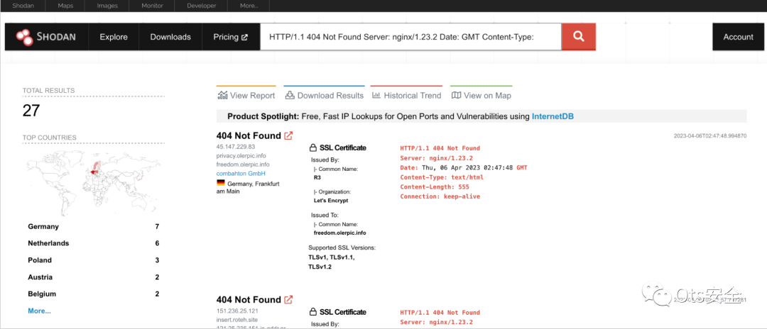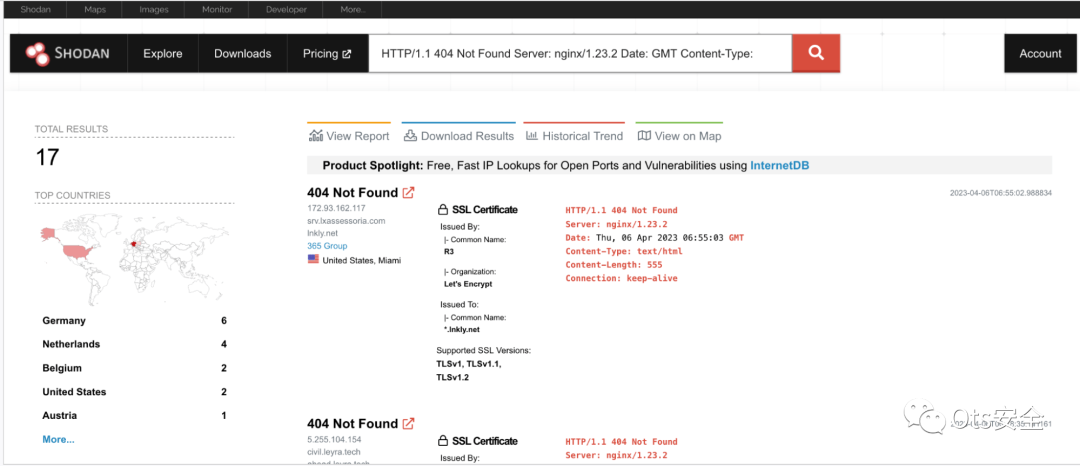 ssl.jarm:"3fd3fd0003fd3fd21c3fd3fd3fd3fd703dc1bf20eb9604decefea997eabff7" HTTP/1.1 404 未找到服务器:nginx 日期:内容类型:文本/html 内容长度:535 连接:保持活动状态