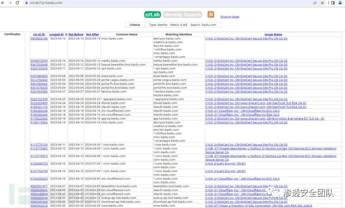 搜索引擎一般会去爬取暴露在公网上的域名,可以在搜索引擎上去搜索相关的子域名信息。如baidu,bing,google。