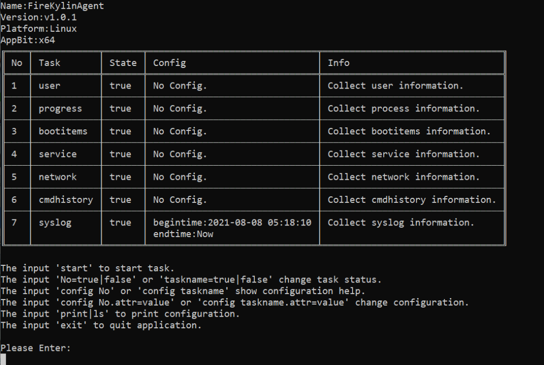 在应对安全事件上机排查时,对于没有此方面经验但是有研判能力的安全专家来讲,经常苦于需要参考各种安全手册进行痕迹采集、整理、研判,此时我们可以使用FireKylin-Agent进行一键痕迹收集,降低排查安全专家收集工作的难度。