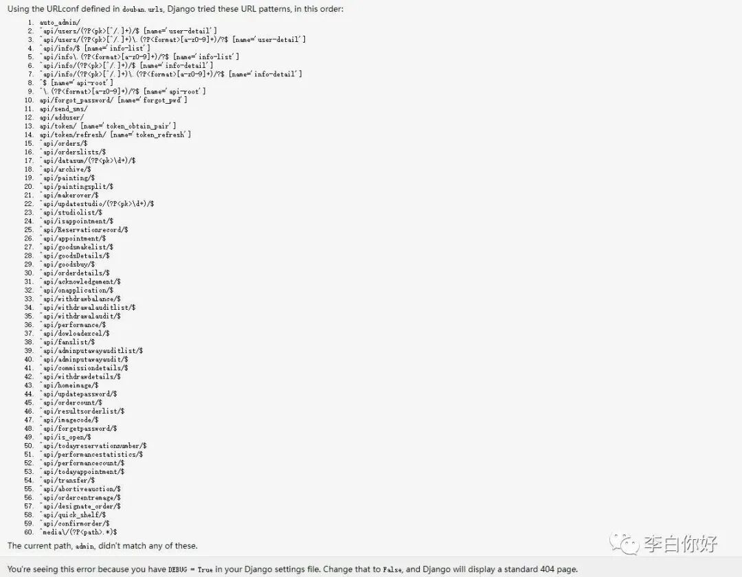 Django 开启 debug 的情况下,不仅会泄露后台地址,还会泄露其他的一些敏感信息,不过其他的涉及密码的敏感信息都被星号给隐藏了。