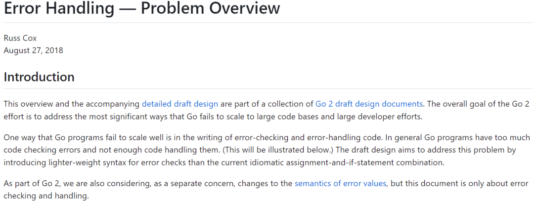 错误处理是社区的一个高优先级问题,并且在冗长性和可调试性方面带来了挑战。Go 团队目前没有公开提案可以分享,但正在继续探索改进错误处理的选项。