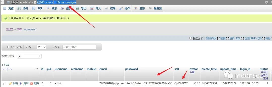 使用读到的数据库用户名密码登录,登录后找存网站后台管理员用户的表,是加盐的md5
