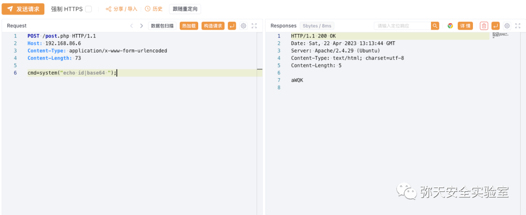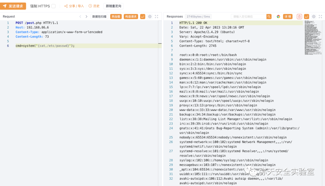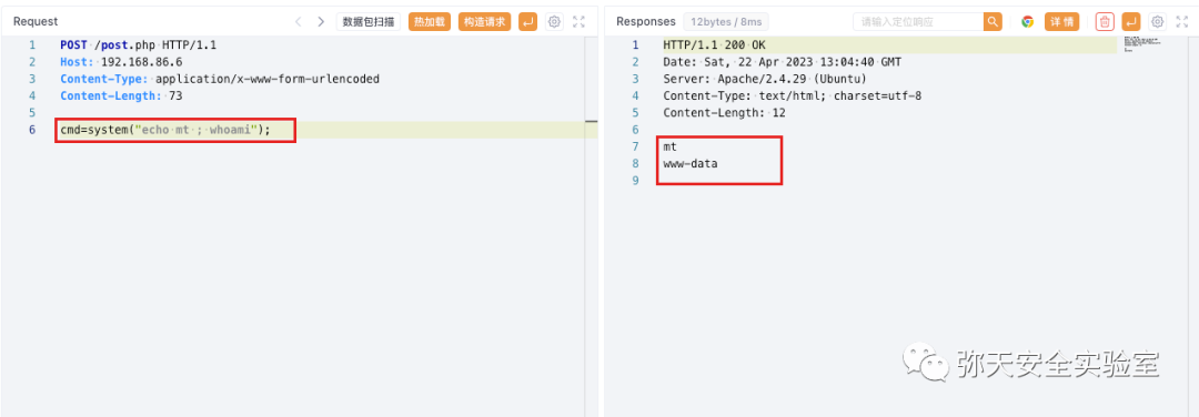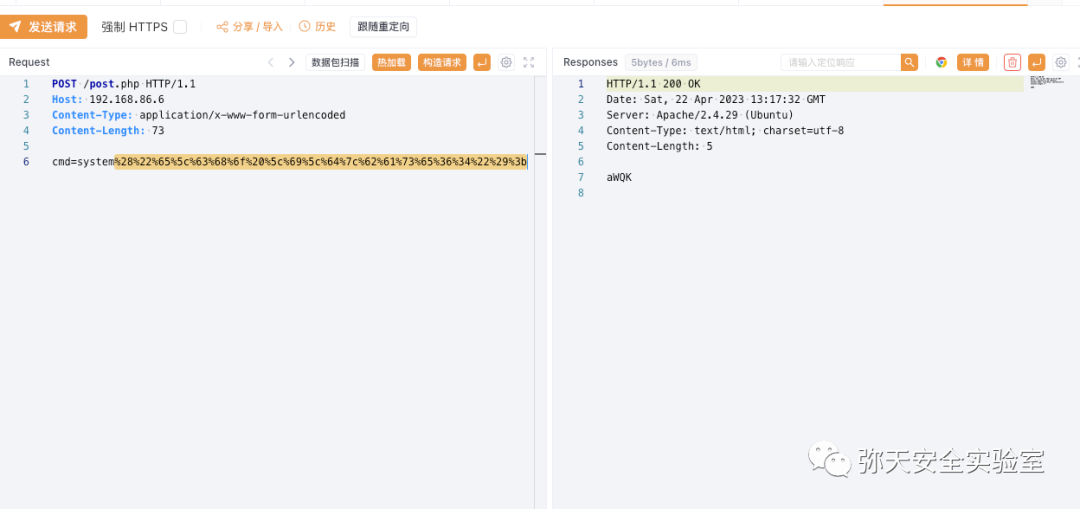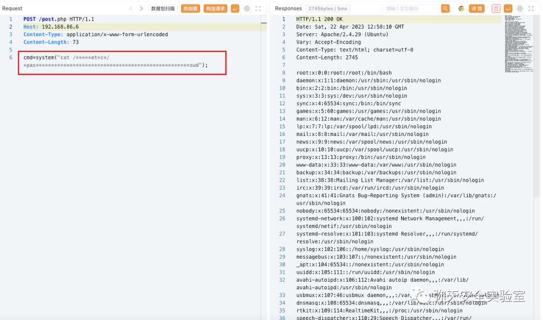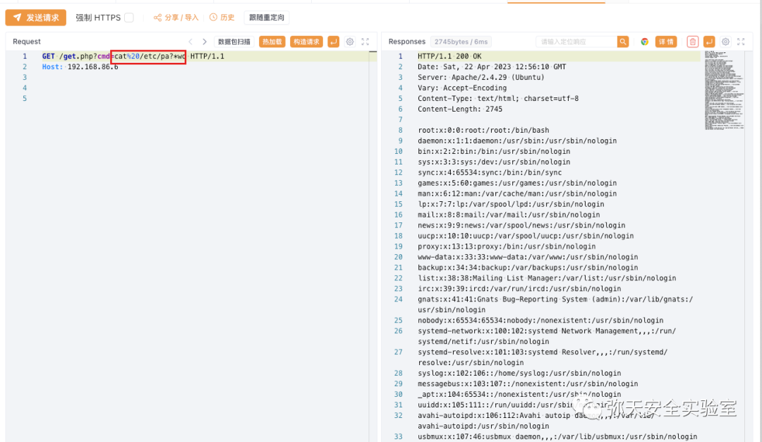 部署服务器端为Linux系统的http服务,留存get和post方式的一句话木马,用于命令执行测试。(测试思路可以对话Chatgpt)