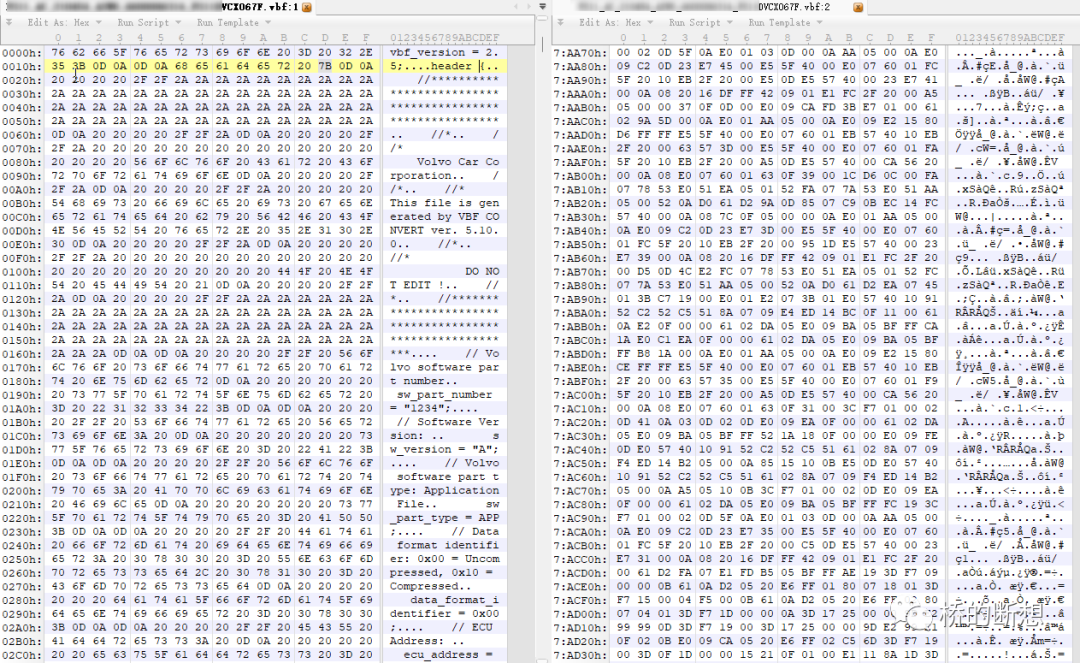 车企自定义格式如,VBF(Volvo Binary File)。VBF 使用在 volvo、mazda、Ford、吉利等品牌的汽车中。