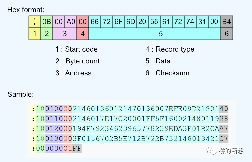 在嵌入式MCU程序开发中,经常编译链接后生成的 HEX 就是采用的 Intel Hex 格式。也是一种将二进制文件转换成了ASCII码形式存储的文本文件。