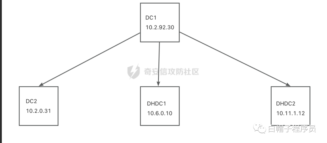 这里经过ping之后发现,域控不是都在同一个网段,应该是如下的结构。