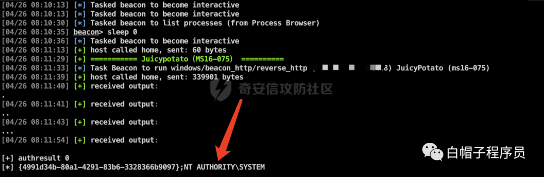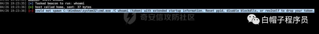 因为渗透到域控的时候,在半夜2点半,所以在拿到DC2的权限的时候,就直接关掉电脑睡觉啦,没有进行留后门和做进程注入,导致第二天上线的时候执行命令出现如下界面。