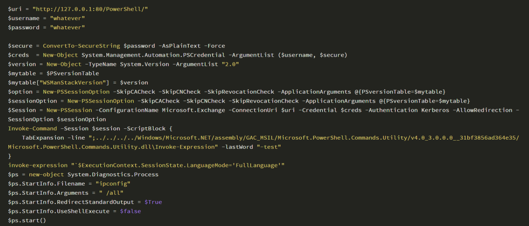 这里需要考虑两部分,一种是通过SSRF漏洞调用Exchange Powershell实现TabShell的Python实现,另一种是通过Powershell Session实现TabShell的Python实现,后者比前者需要额外考虑通信数据的编码和解码,具体细节如下:
