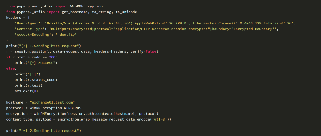 为了分析中间的通信数据,抓取明文数据的方法可参考上一篇文章《渗透技巧——Exchange Powershell的Python实现》中的0x04,在Flask中输出中间的通信数据