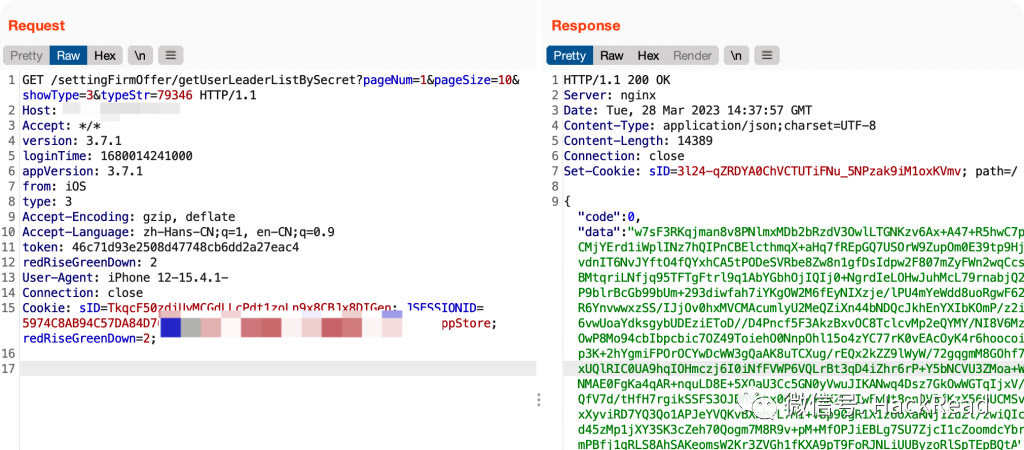 可以看到请求参数是没有加密的,但是返回的关键数据都被加密了,但是无法判断加密算法的类型。