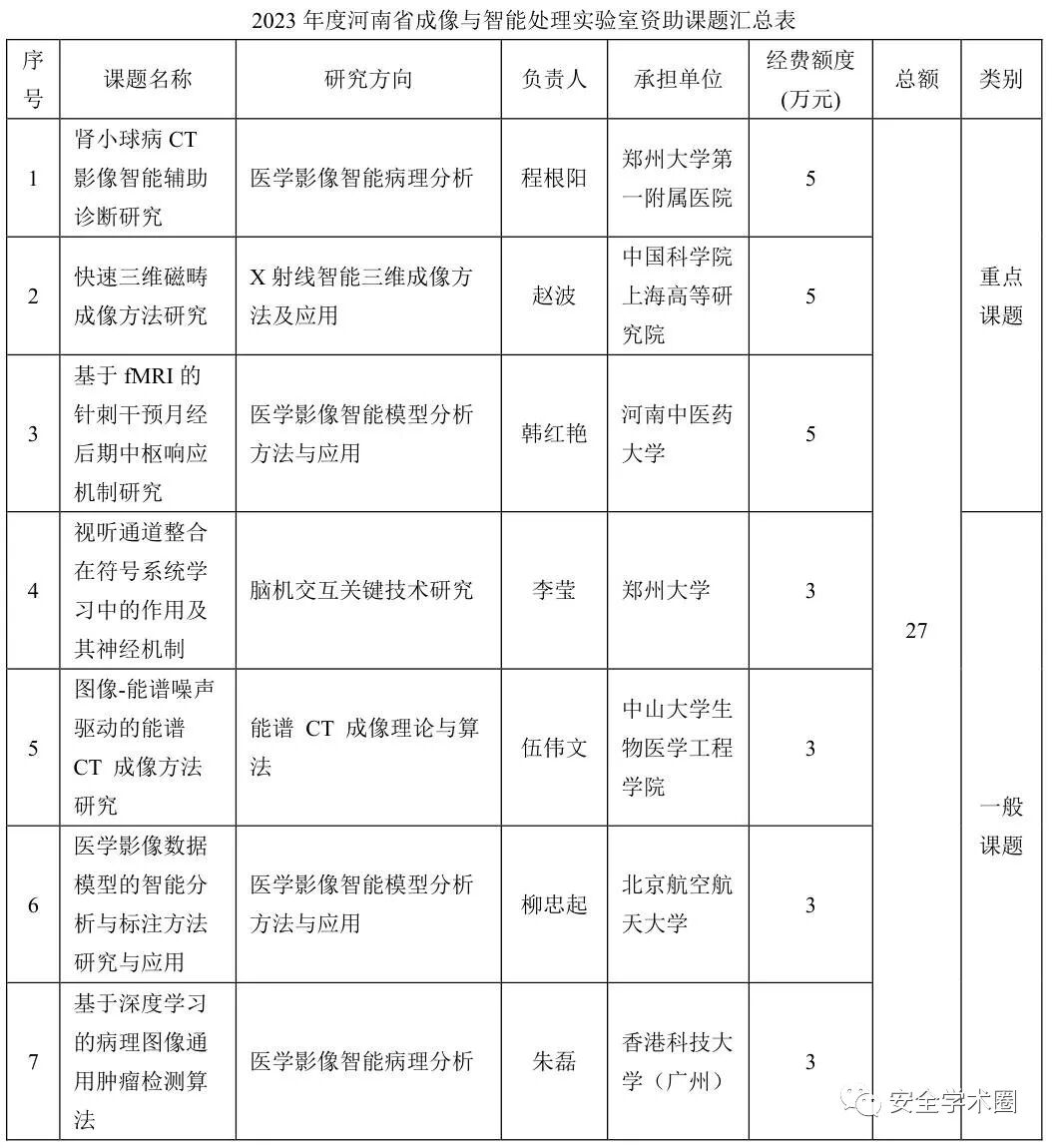 安全学术圈在2023年3月24日发布了“2023年河南省成像与智能处理重点实验室开放课题”的申请,目前该课题评审工作已经结束,2023年度河南省成像与智能处理实验室资助课题汇总表如下,恭喜各位老师,公