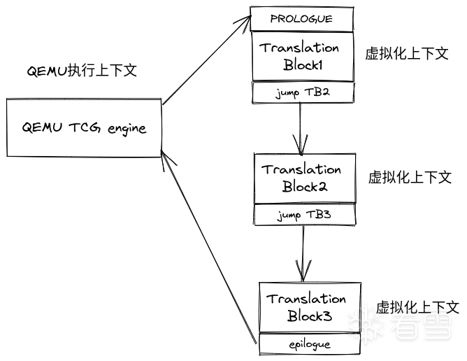 cpu->icount_decr_ptr->u16.high置为-1时就是告诉tcg线程中正在执行的tb尽快退出,回到qemu上下文进行外部中断的处理。icount_decr_ptr还涉及到qemu的一个特性叫TCG Instruction Counting:OP: