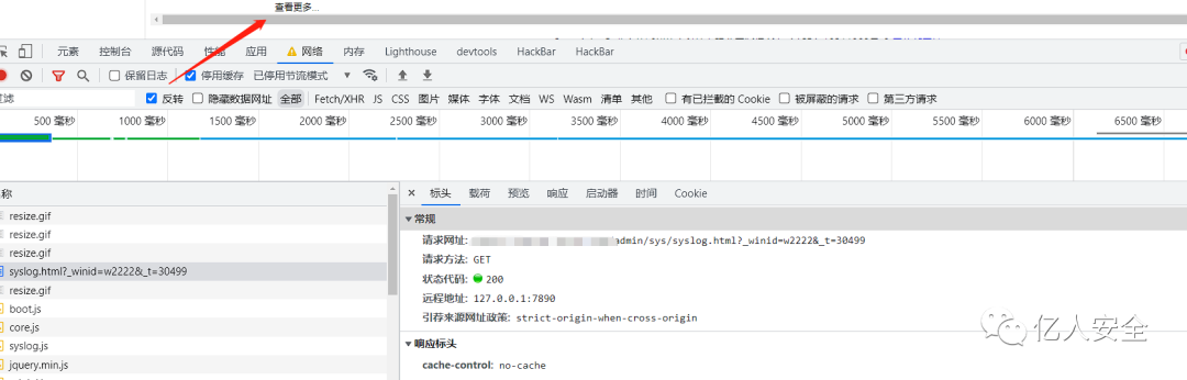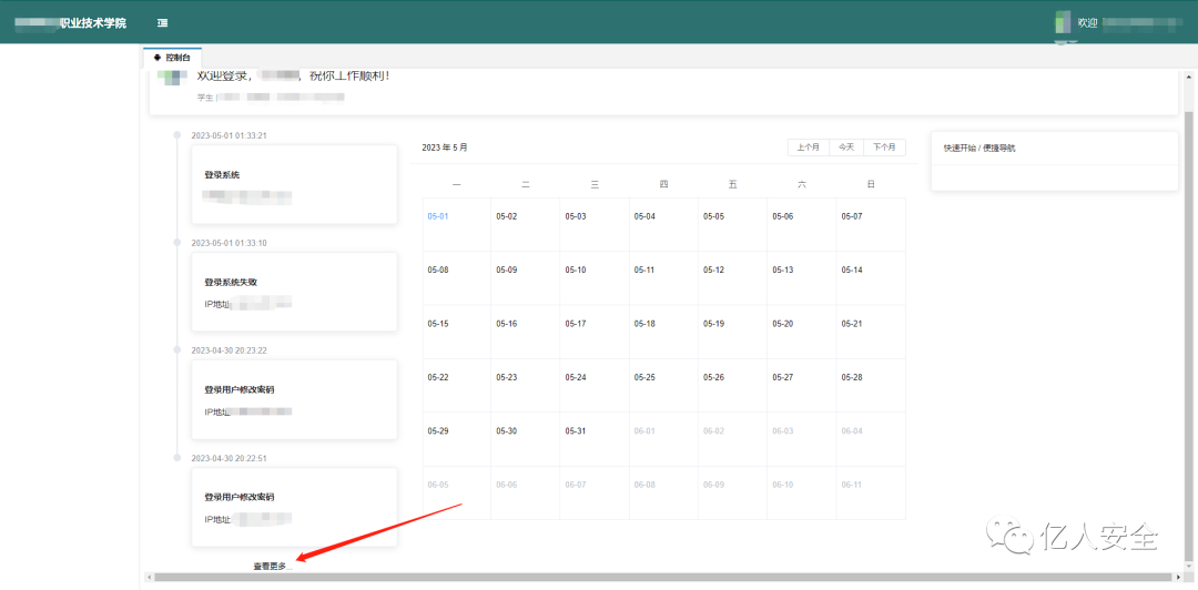 此时发现有个查看更多的功能点,点击后可查看自身的登录日志及其他日志,F12再点击此功能