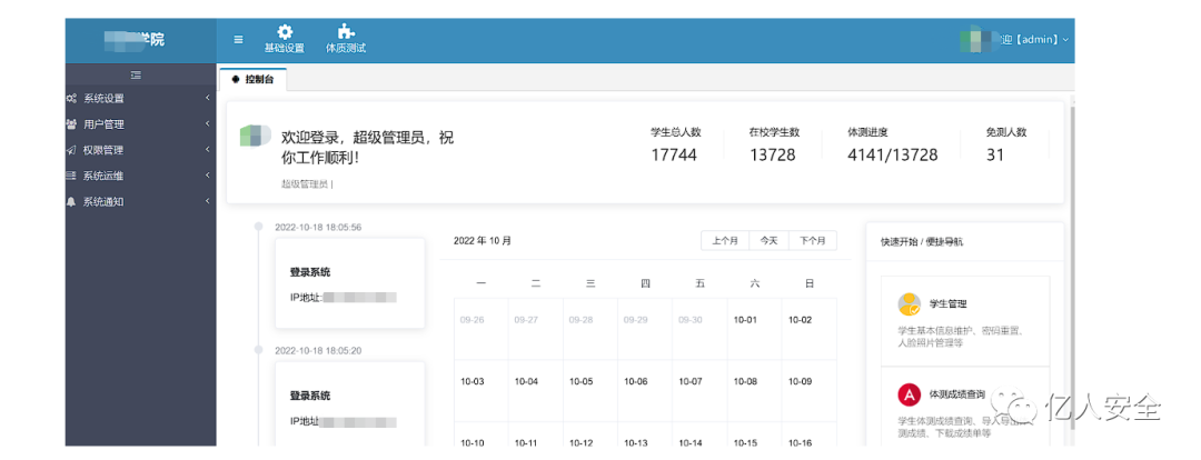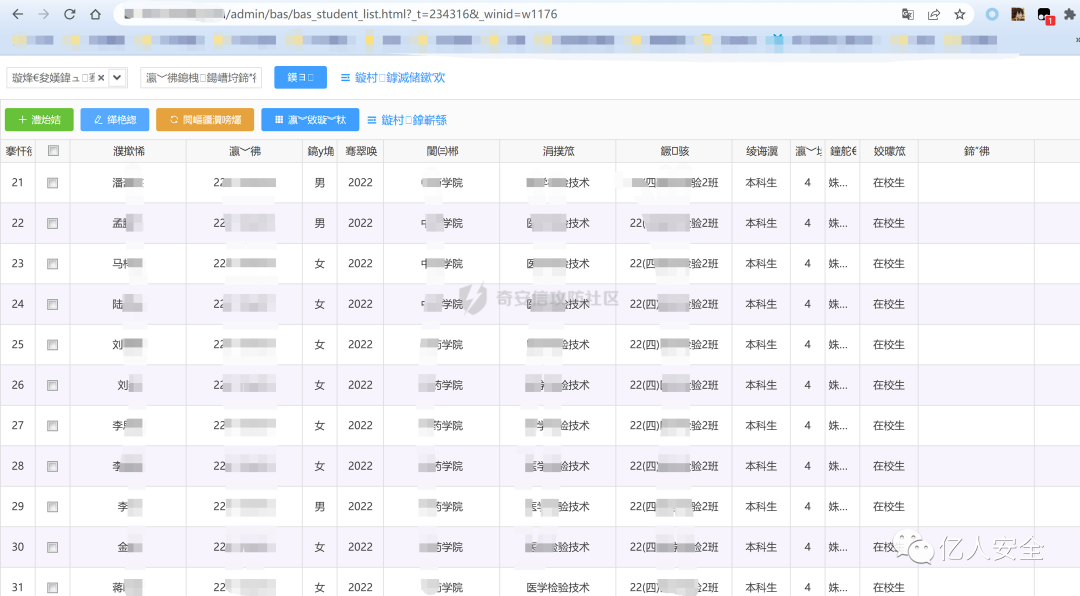 获取到了大量学生数据。第一个漏洞此时就出现了,存在危害的弱口令漏洞。