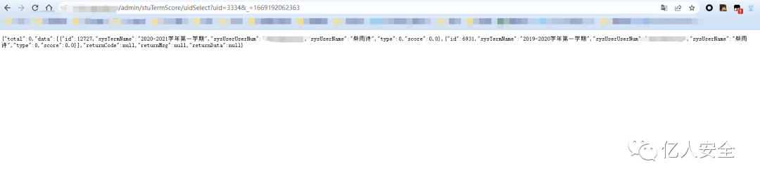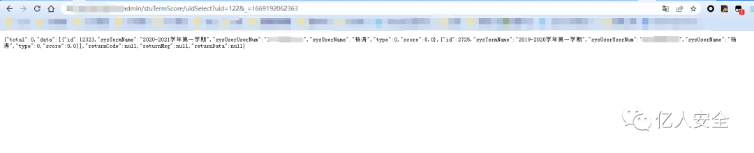 而后在查询成绩的这个接口,即admin/stuTermScore/uidSelect?uid=122&_=1669192062363这里发现了参数uid