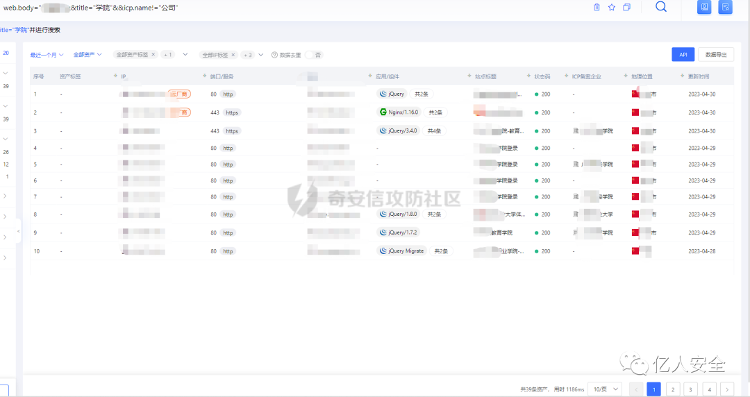 web.body="xxx科技"&&title="学院"&&icp.name!="公司"当时用这种方法进行了搜索,显而易见,资产少了很多,因此当时只刷了一点点分数。