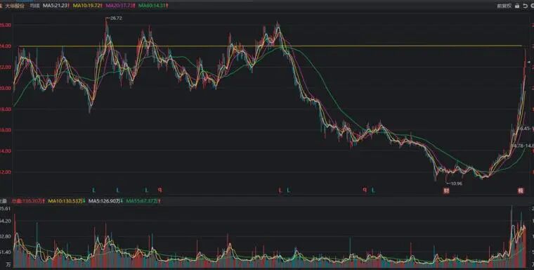 3、 一位朋友买入了大华股份,这个股短期上行空间很小,下行空间很大,结合板块连续高潮,随时可能分歧,不应该介入。这个股明天涨停都有可能,跌停也有可能,意味着什么?意味着不确定性太大。我们想生存下去,各种学,追求的就是更高概率的确定性,更小的风险去获利。