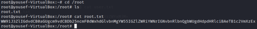 WW91J3ZlIGdvdCB0aGUgcm9vdCBDb25ncmF0dWxhdGlvbnMgYW55IGZlZWRiYWNrIGNvbnRlbnQgbWUgdHdpdHRlciBAeTB1c2VmXzEx很明显也是base64编码,进行解码。
