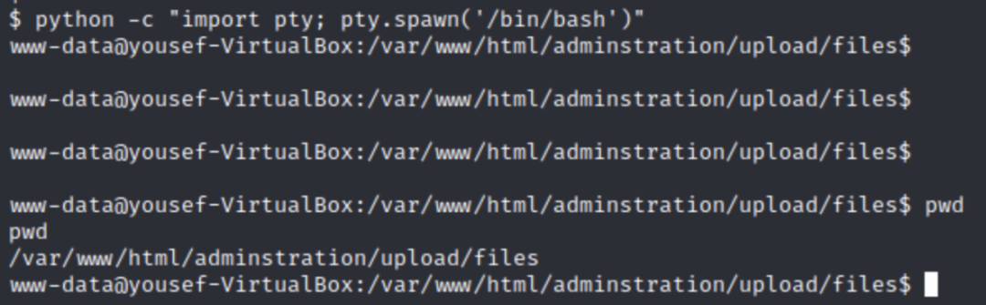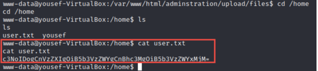 python -c "import pty; pty.spawn('/bin/bash')"在/home目录下找到一个flag