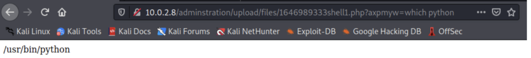 shell成功上传,并且可以利用shell执行命令,查看一下目标靶机有没有python环境。