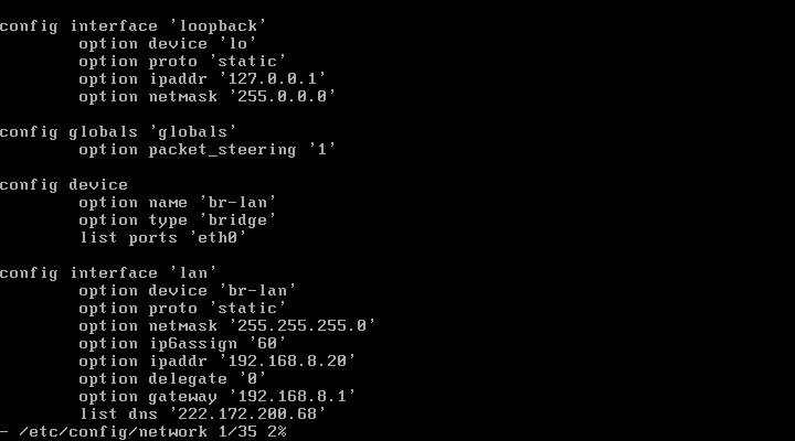 搜索open wrt网卡配置,可以看到网络配置在/etc/config/network里