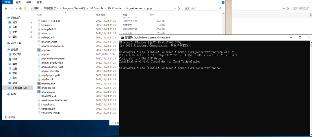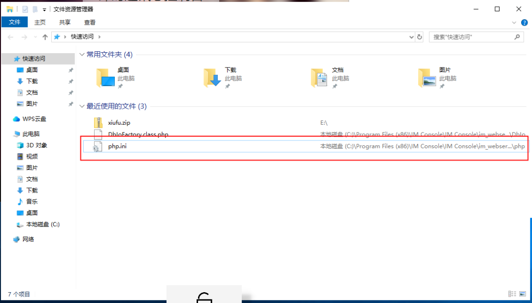在快速访问中发现最近曾编辑过php.ini,打开文件所在位置为C:\Program Files (x86)\IM Console\IM Console\im_webserver\php